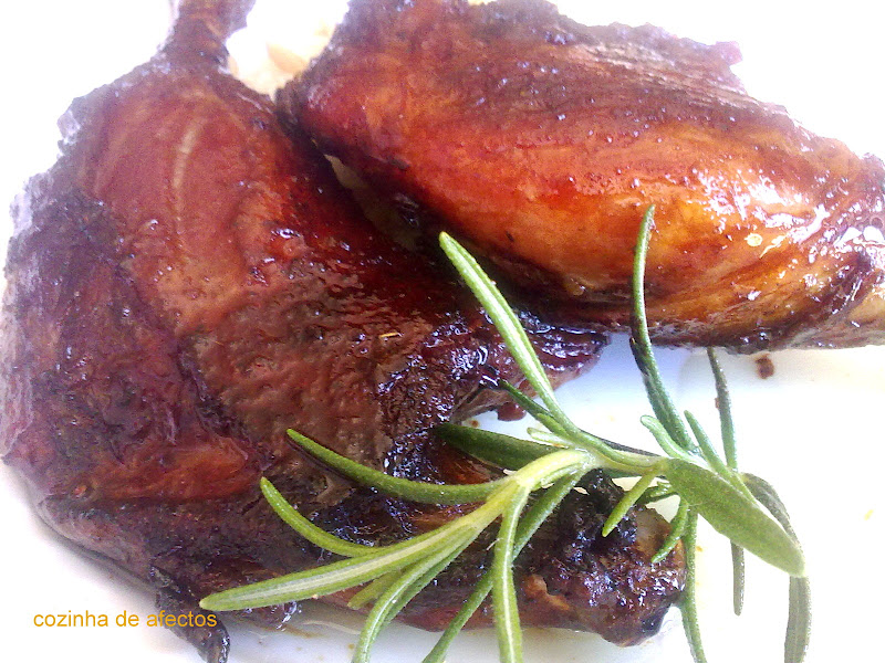 Leve ao forno quente e deixe assar lentamente. Regue várias vezes com o próprio molho.